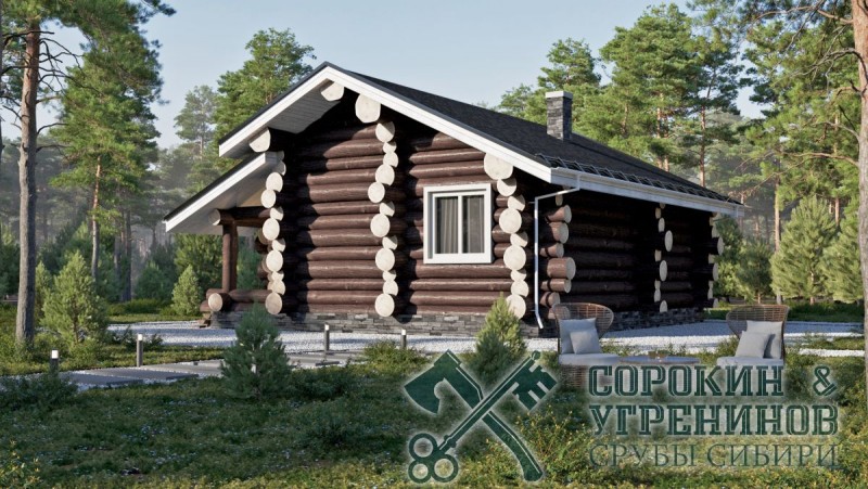 Сруб бани рубленый из бревна кедра диаметра 360мм площадью 68,5м2. Размер сруба 8,4х9,7 метров по осям. Баня имеет спальню с отдельным входом и санузлом. Парная, комната отдыха, есть душевая и сунузел, и отдельный вход в баню. Сруб рубленый вручную в русскую чашу (охлоп), брёвна окоренные гидро-окоркой (водой под высоким давлением), а так, же это можно сделать скобелем или лопатой, или строганное рубанком. Объем бревна в срубе 90м3.